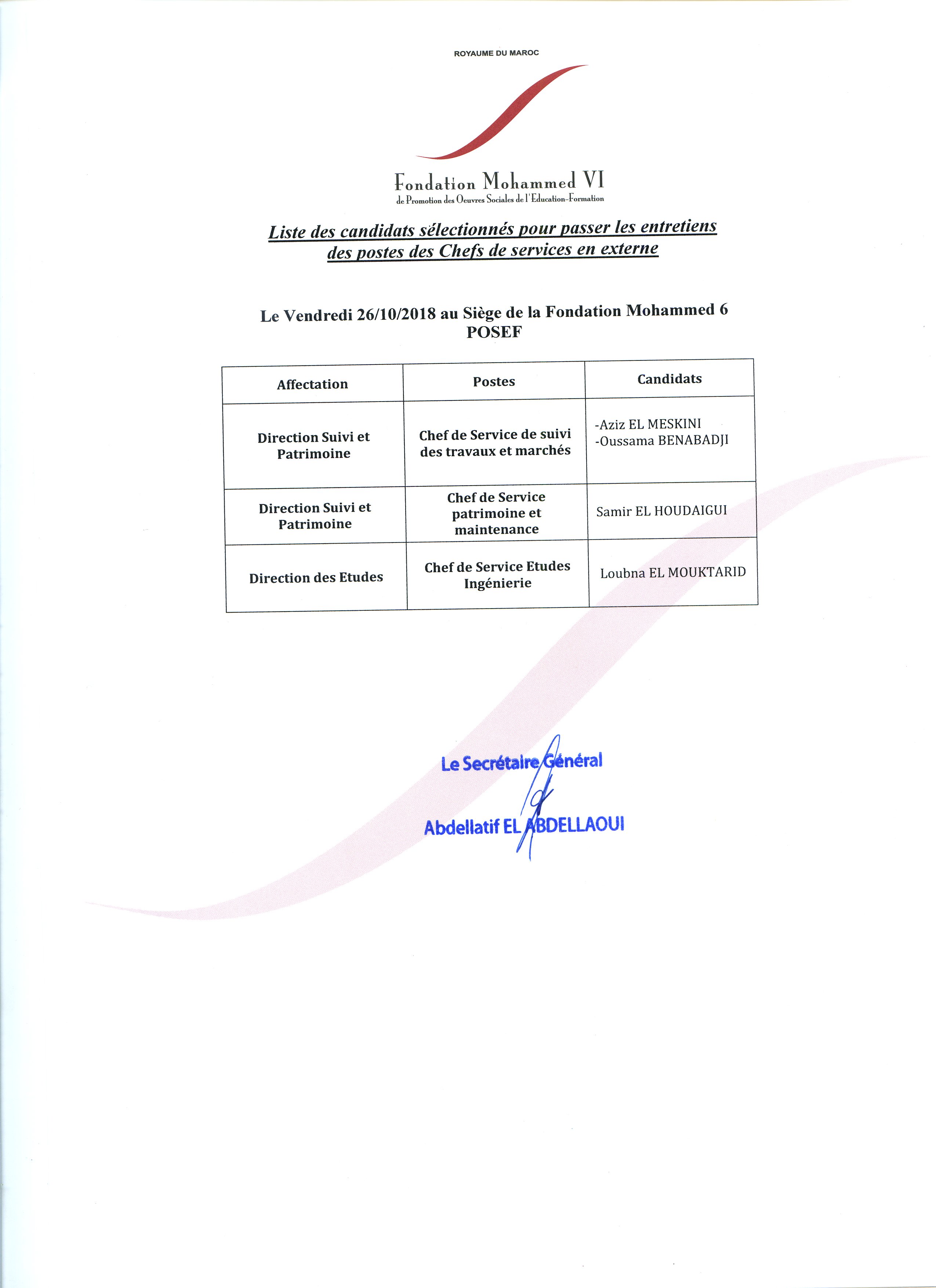Chef de Service de suivi des travaux et marchés |