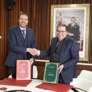 Le Président de la Fondation Mohammed VI de Promotion des Œuvres Sociales de l’Education-Formation, Monsieur Youssef EL BAKKALI, et le Président de l’Université Internationale d’Agadir –Universiapolis, Monsieur Aziz BOUSLIKHANE ont ...