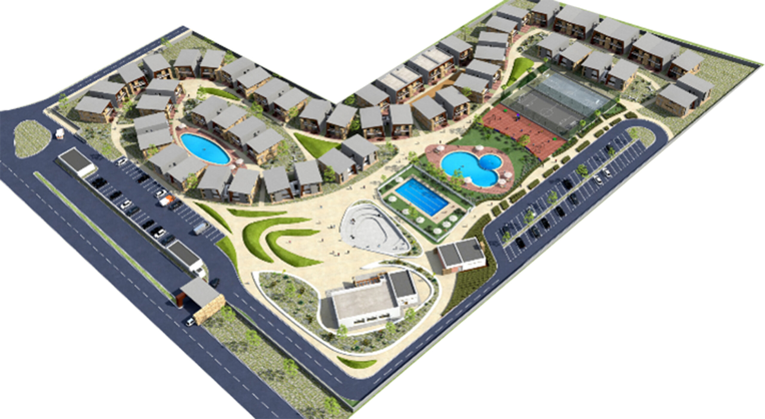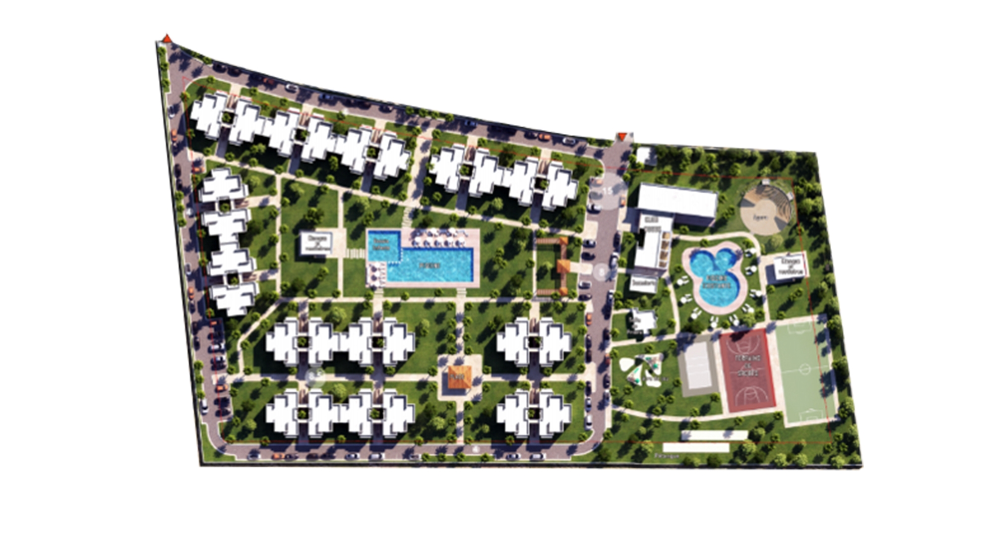 • D’espaces extérieures pour les activités récréatives et sportives (piscines, pataugeoires, terrains de sport, aires de jeux pour enfants…) ;